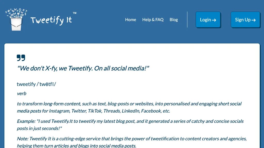 Tweetify.it is a web-based tool that generates AI-powered tweets on various topics to help...