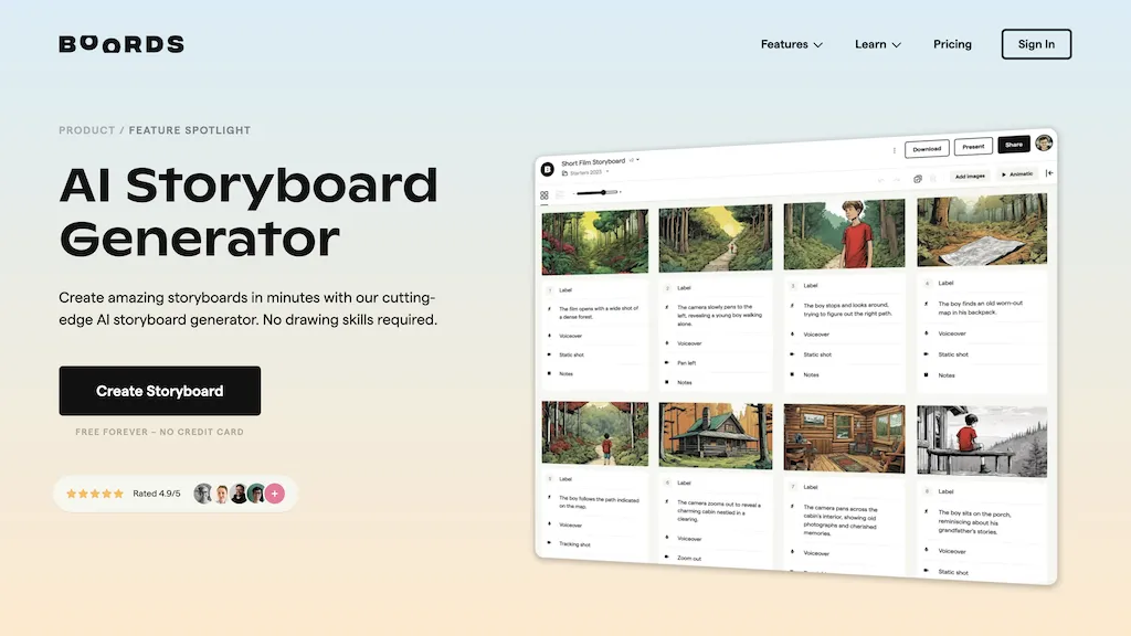 Boords.com/ai-storyboard-generator is an AI tool that automatically generates visual storyboards from text scripts, saving...