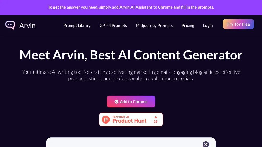 Arvin is an AI-powered writing assistant that helps users generate high-quality content quickly and...