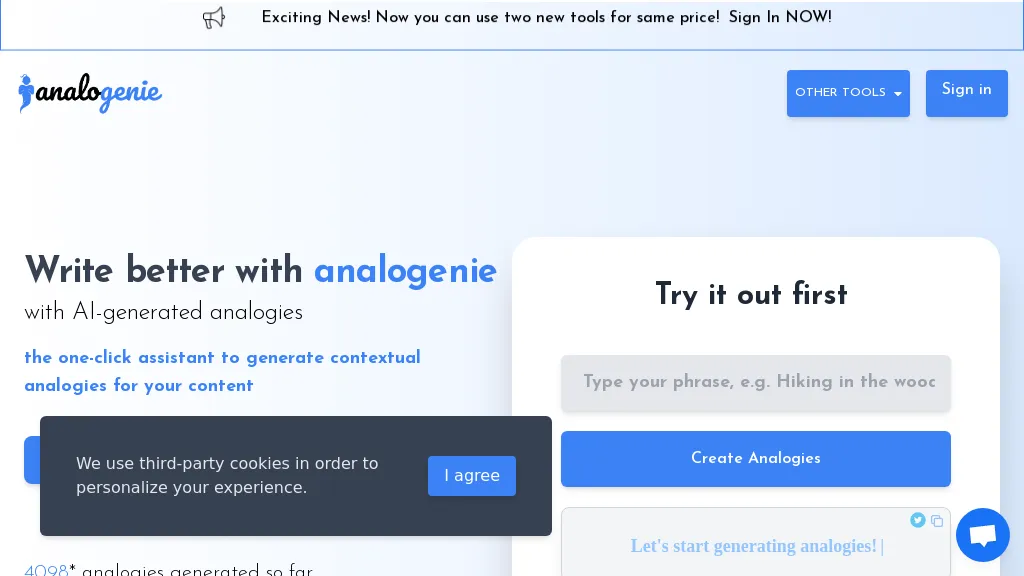 AnalogEnie is an AI-powered tool that helps generate creative analogies and ideas to enhance...