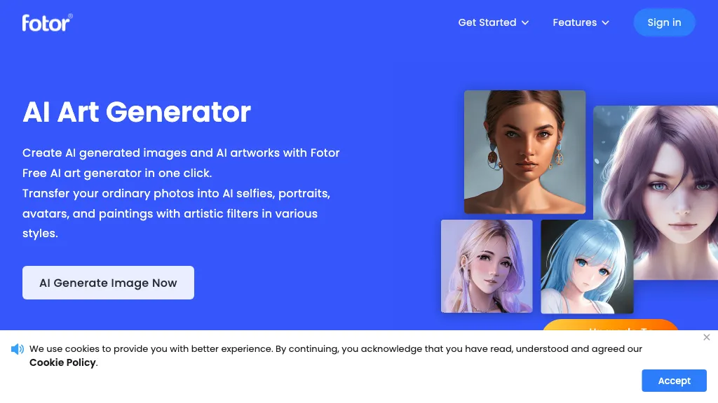 Fotor's AI Art Generator allows users to create unique digital artworks by simply entering...