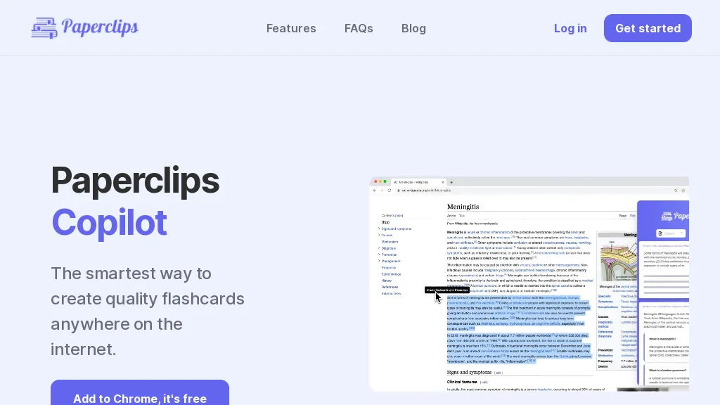 Paperclips Copilot is an AI-generated flashcard tool that helps create quality flashcards from course notes,...