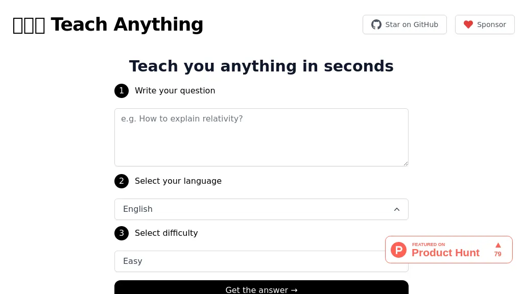 Teach you anything in seconds using AI. Describe a concept that you want to teach...