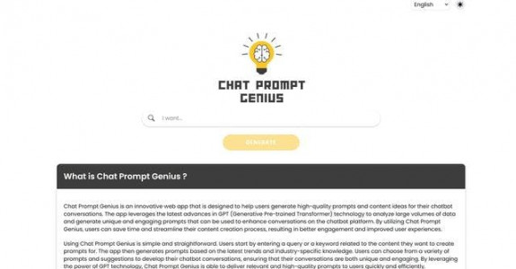 ChatPromptGenius.com is an AI-powered platform that helps users generate high-quality, engaging prompts for chatbots...