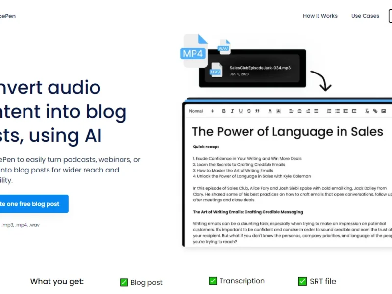 Voicepen.ai offers an AI-driven transcription service that converts audio and video files into accurate...