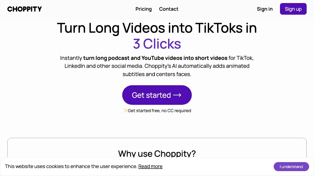Choppity.com offers an intuitive online video editing platform with AI-powered features for basic to...