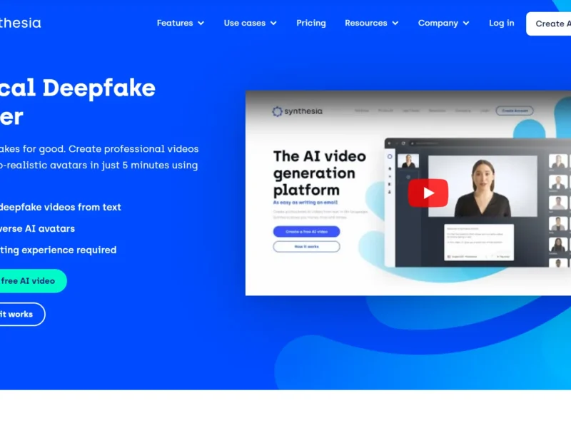 Synthesia.io's deepfake video maker tool enables users to create highly realistic AI-generated videos by...